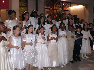 Ir. Maria Delia preparou estas crianças e cantaram no momento de acção de graça.